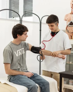El Ciclo Formativo de Grado Medio de Cuidados Auxiliares de Enfermería (LOGSE) tiene una duración de 1400 horas, incluyendo prácticas obligatorias y tuteladas en empresas. Durante el primer año se impartirán los módulos profesionales que presentamos a continuación y durante el segundo año se realizarán las prácticas en empresas desde setiembre a diciembre.